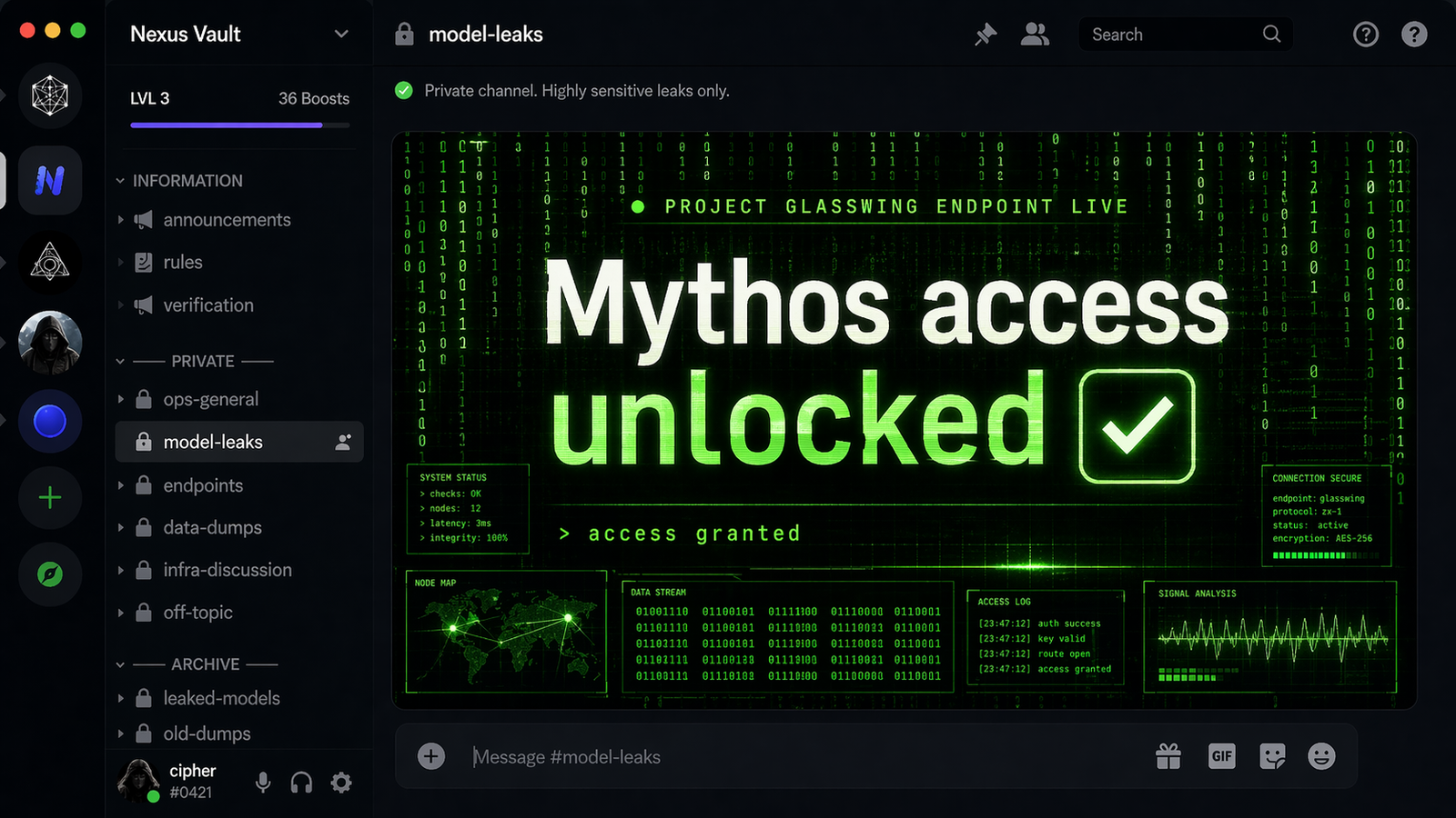 Bloomberg reported that a private Discord group tracking unreleased models accessed Mythos on release day and has been using it regularly.