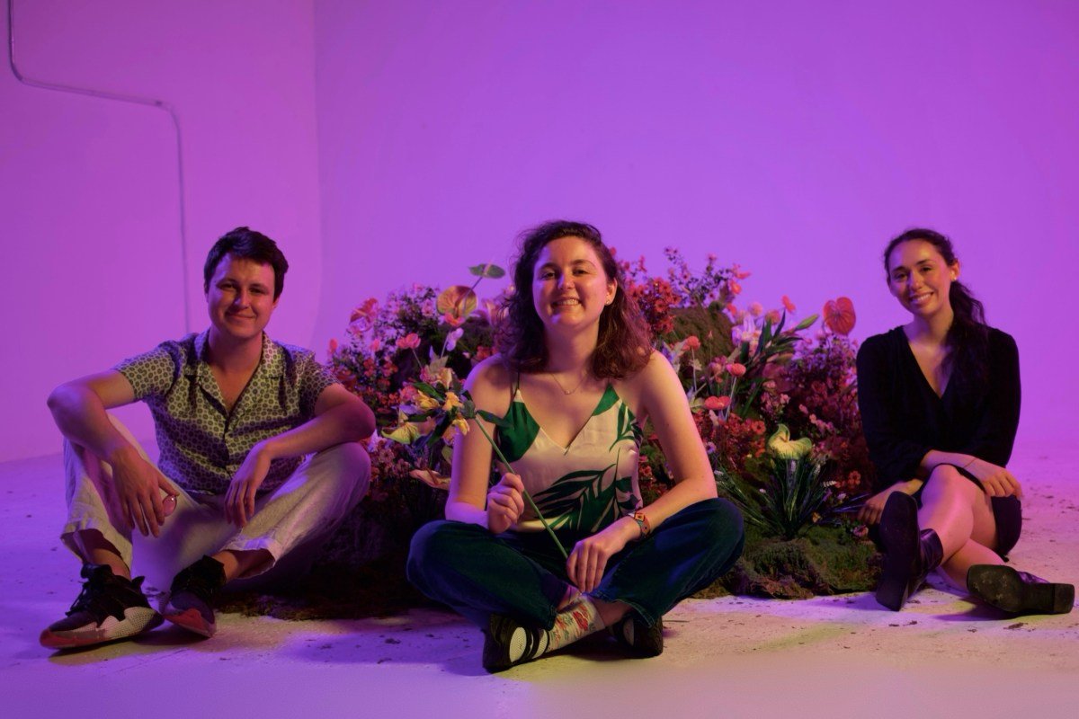 3 young adults sitting with AI gadgets