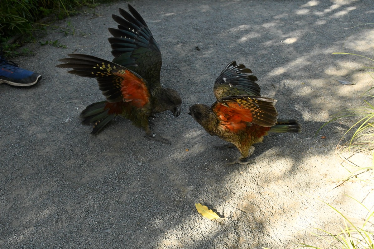 The key to Bruce’s success and overall chill mood? His unique beak-jousting technique, which enabled him to quickly displace his rivals. At close range, Bruce would extend his neck to thrust at opponents, adding a run or jump to the motion when attacking from farther away. Other non-disabled males mostly bit downward onto an opponent’s neck, while Bruce mostly engaged in forward thrusts and targeted the back, head, wings, and legs of his opponents. He kicked at the same rate of other kea but used his half-beak much more frequently.