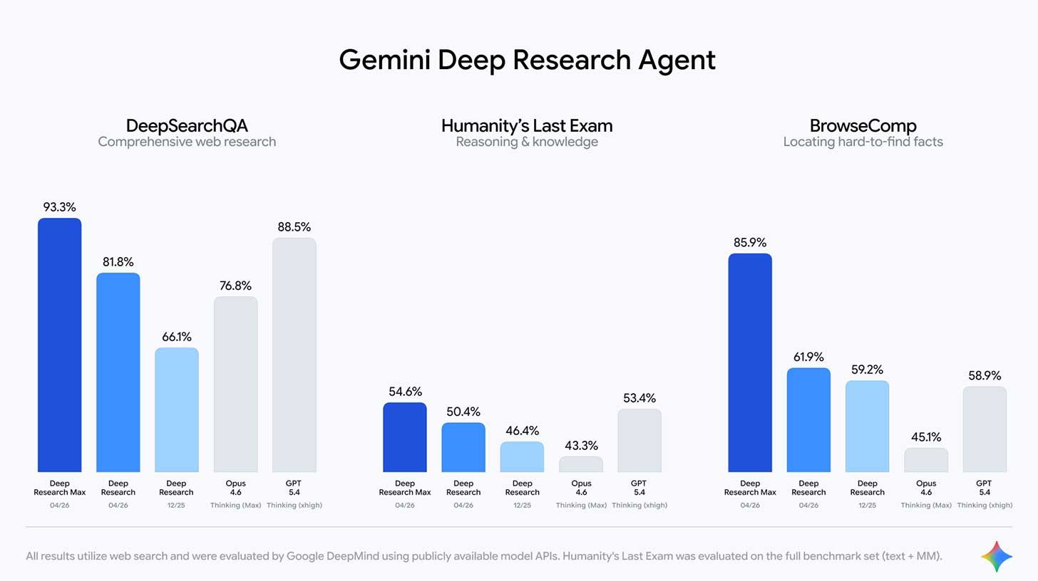 The Rundown: Google released Deep Research and Deep Research Max, two SOTA agents that use Gemini 3.1 Pro to generate research reports from the web, uploaded files, or any Model Context Protocol server, complete with charts and infographics.